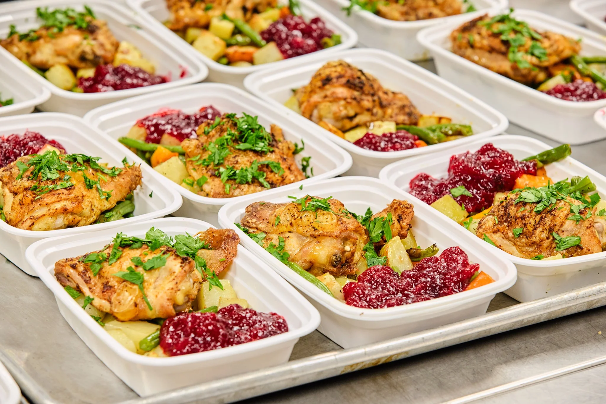 At Community Meal Prep Club, we gather groups together to prepare vibrant, delicious meals for donation. In partnership with local food security organizations and mission-driven kitchen spaces, we join the effort of ending hunger in our communities.